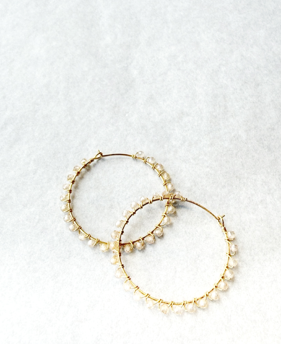 Hoop earrings adorned with semi-precious stones.
