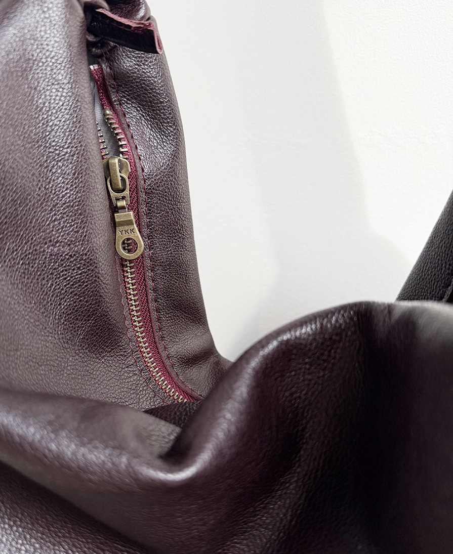This bag can be ordered in a leather and color you want. We have many leather hides hanging in the store in Rotterdam and if you cannot come by, we can send a few leather samples by post. Some more customizing in details is possible.