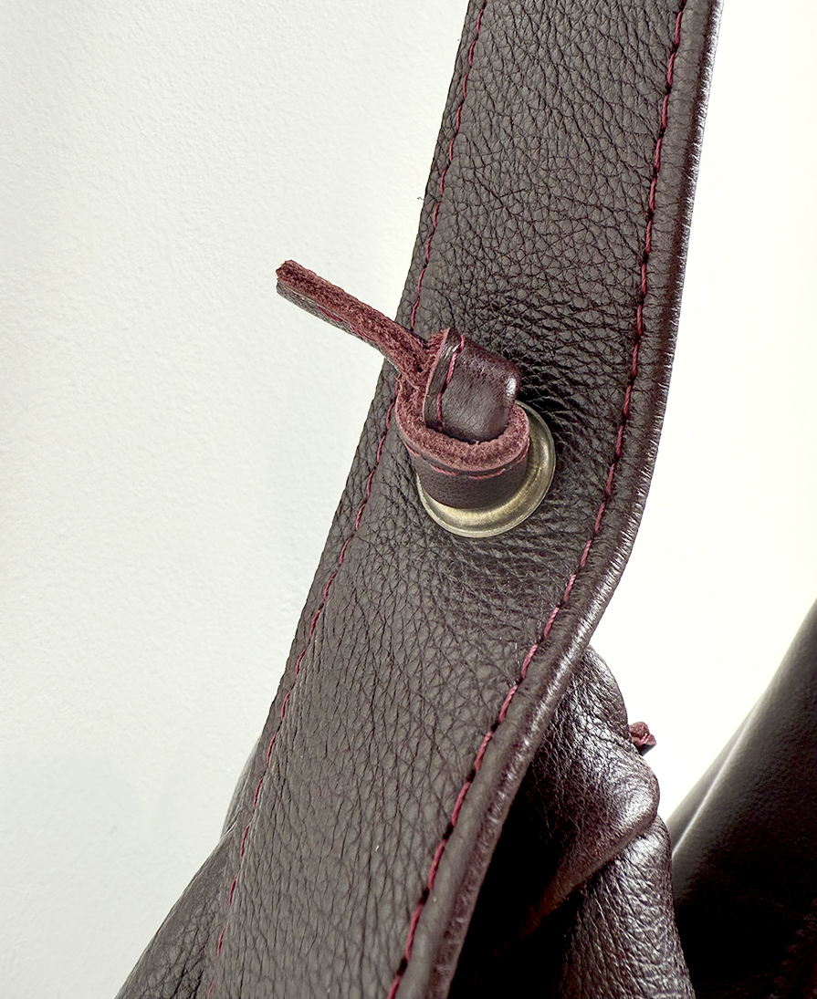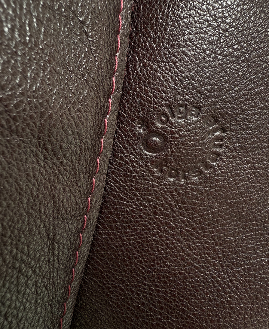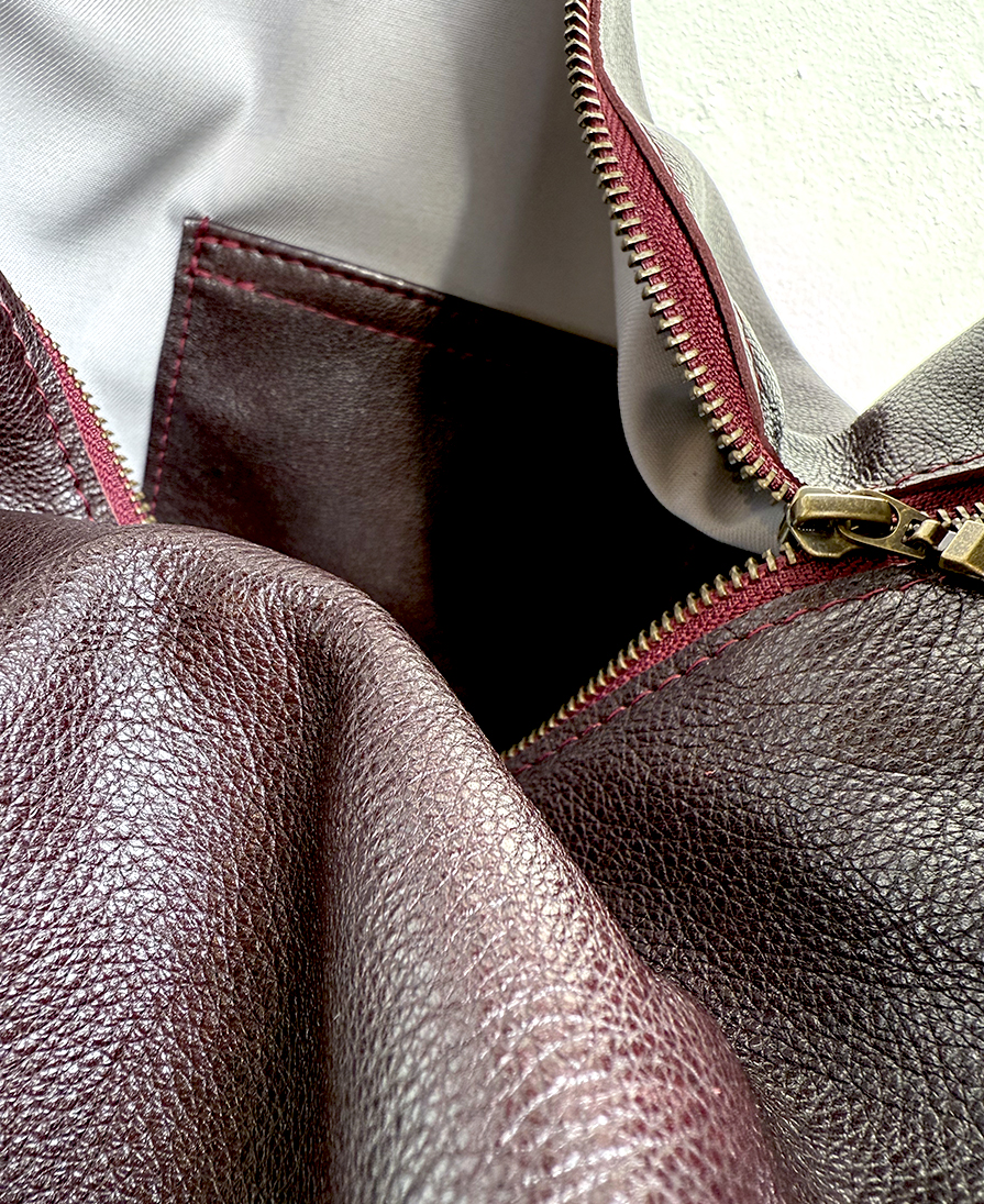 Sturdy elegant handbag with two-in-one handle to wear it in different ways. Closed by a zipper. Cotton lining and two inner pockets, one with zipper.