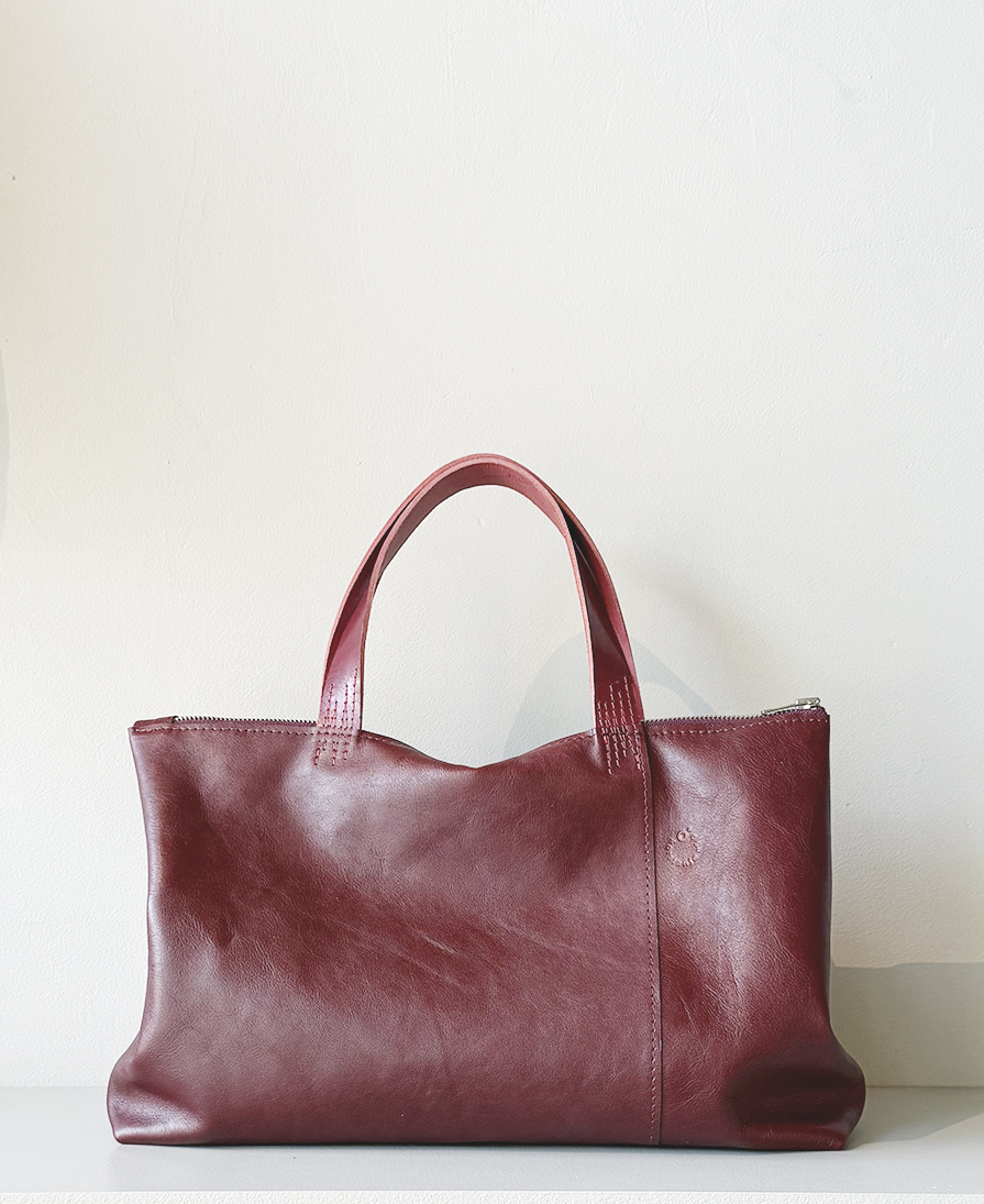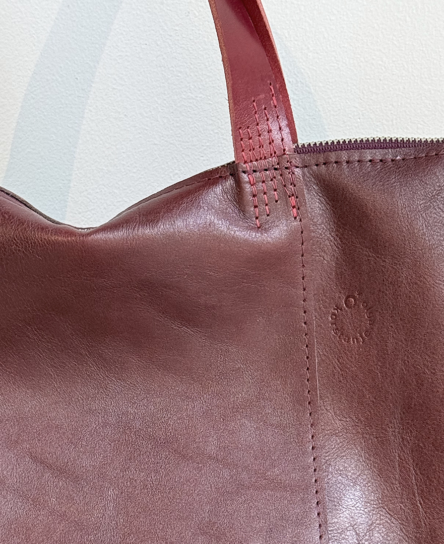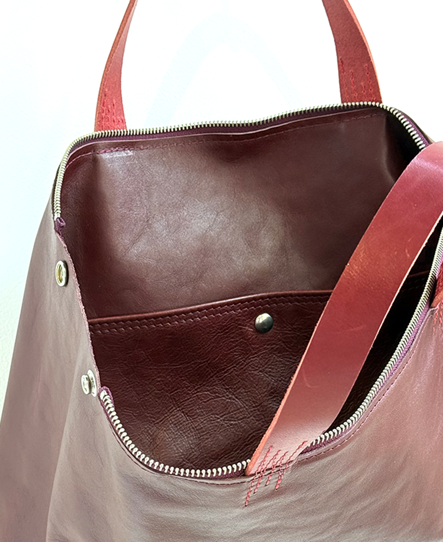 This bag can be ordered in a leather and color you want. We have many leather hides hanging in the store in Rotterdam and if you cannot come by, we can send a few leather samples by post.