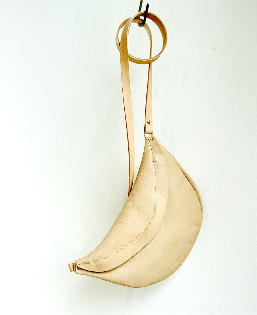 ‘Smile bold’ is a half round bag. Closed with a hidden zipper and the shoulder strap is adjustable. One extra zipped pocket on the back.